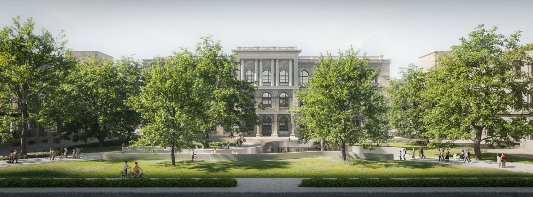 WXCA zaproponowało potraktowanie współczesnego muzeum jako publicznej instytucji o fundamentalnej funkcji społecznej – instytucji demokratycznej oraz stanowiącej aktywne medium dla życia wspólnoty, co znalazło wyraz w śmiałej koncepcji układu przestrzennego budynku, nowego wejścia i ukształtowania przestrzeni zewnętrznych. Znalazło się tu nowe – metaforyczne i fizyczne – otwarcie muzeum w postaci ciągłego, przepływającego przez kampus muzealny krajobrazu. Nowa strefa wejściowa z funkcjami towarzyszącymi zorganizowana na zaadaptowanym poziomie -1 łączy się z zewnętrznym krajobrazem i miastem, pozostawiając historyczną oś ogrodu, kierując do wejścia poniżej portalu zabytkowego. To połączenie między muzeum i miastem miałoby stworzyć platformę interakcji społecznych: spontanicznych spotkań, ekspozycji i aktywności plenerowych czy performance’ów. Zielona przestrzeń wokół została zaplanowana jako naturalna sceneria, dająca możliwość rozszerzenia programu kulturalnego i wykroczenie poza ramy instytucji. Samo wnętrze zaprojektowano w oparciu o elastyczny plan funkcjonalny z przejrzystym układem komunikacyjnym.