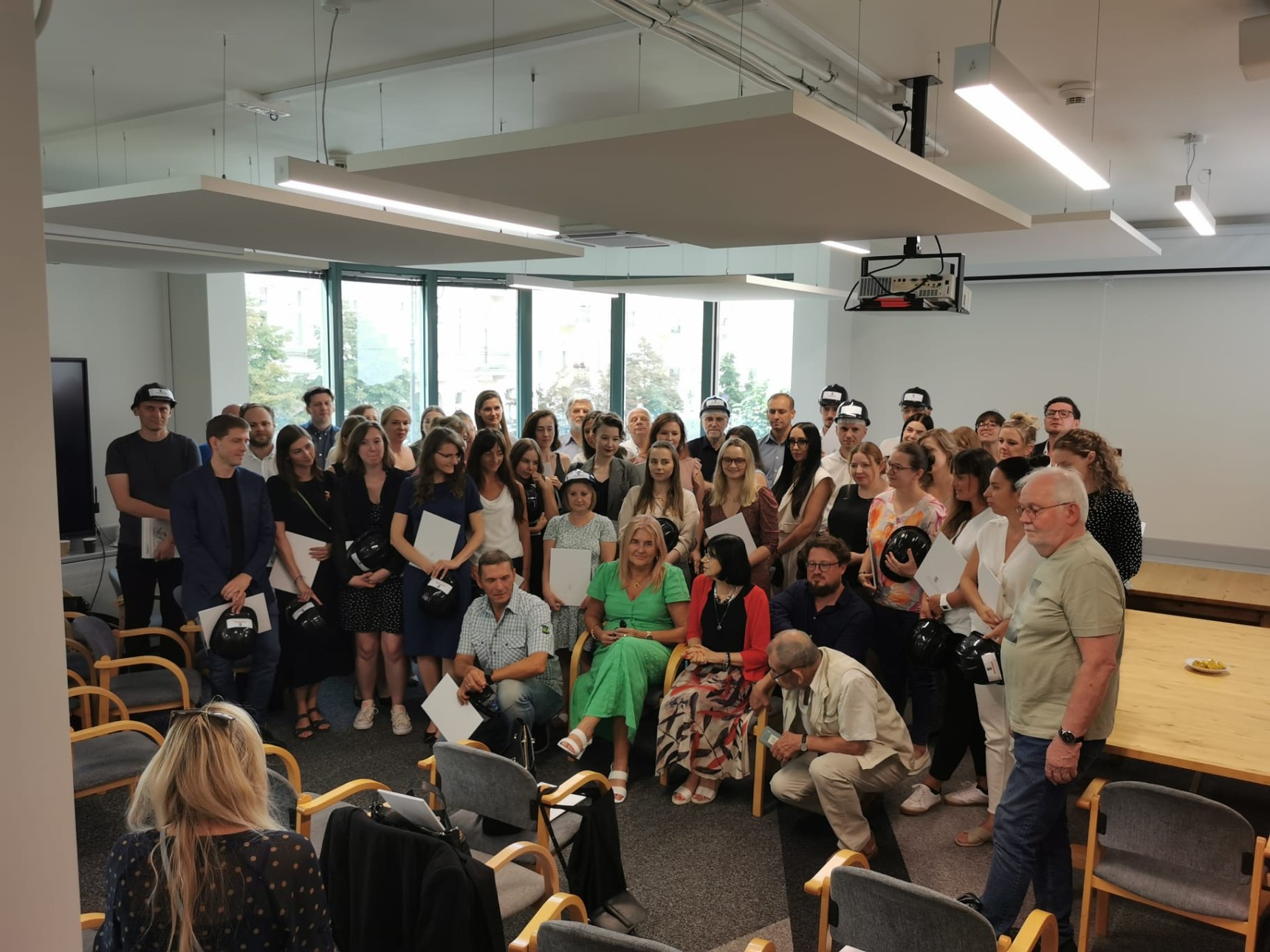 Mimo okresu wakacyjnego, z 59 zaproszonych osób, które zdały pomyślnie egzamin na uprawnienia (projektowe, wykonawcze lub projektowo-wykonawcze) w tej sesji, przybyło 45, aby odebrać podczas uroczystego spotkania dokument potwierdzający otrzymanie uprawnień . Wręczono też czarne , przynależne architektom na budowie , kaski.